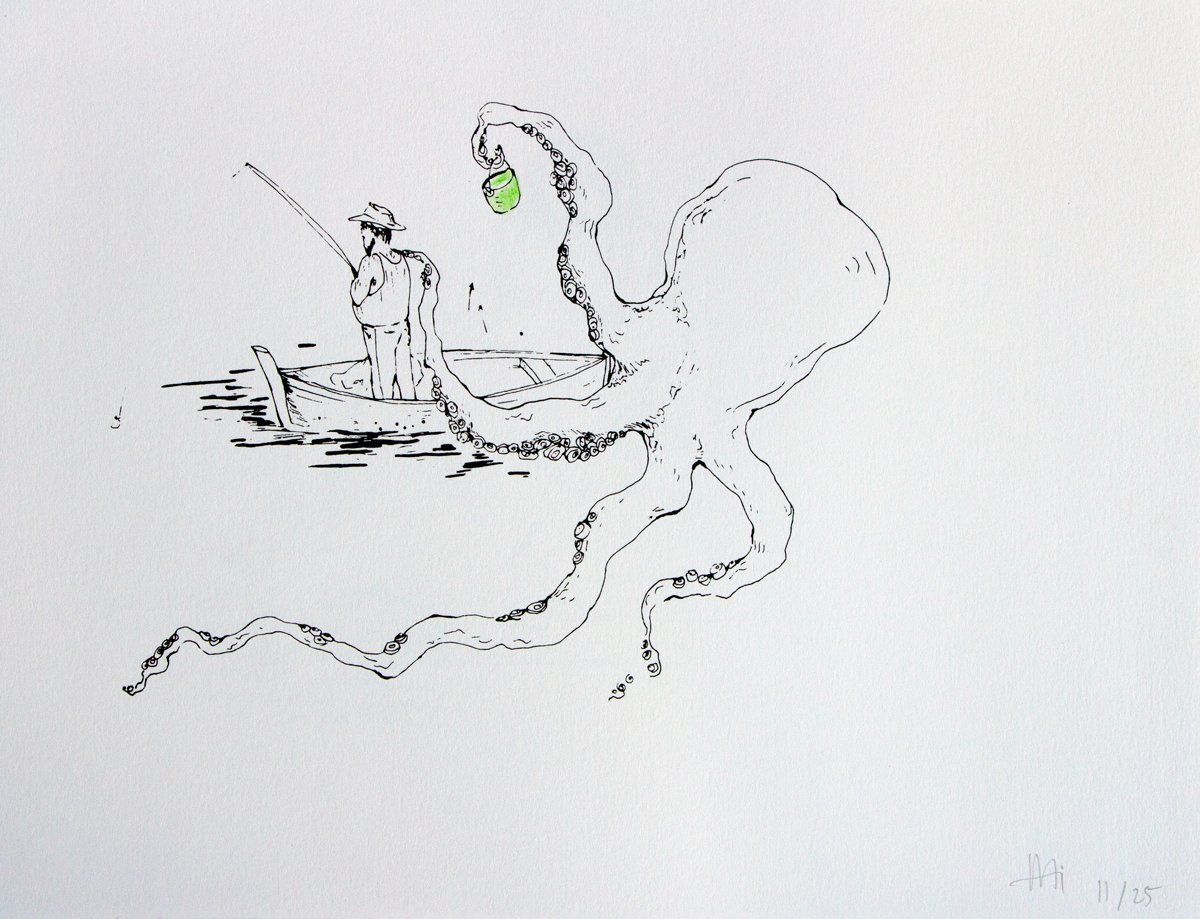 Serigrafías A3 de la serie Arqueologías futuras, realizada en los talleres de la Fundació Miró Palma, 2014. 1 de 25 copias.